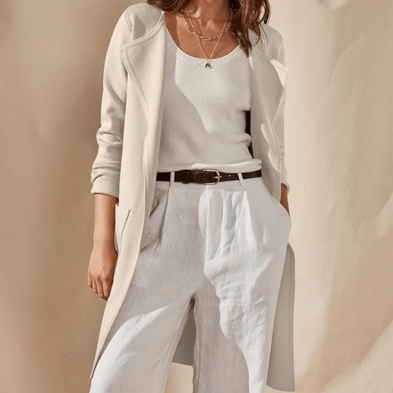 Layer an blazer (regular, oversized, short, belted, tweed, or leather), or cardigan on top of the bodysuit to add an elegant touch. Add slacks or leggings to look and tie it together with a nice pair of boots or formal shoes.