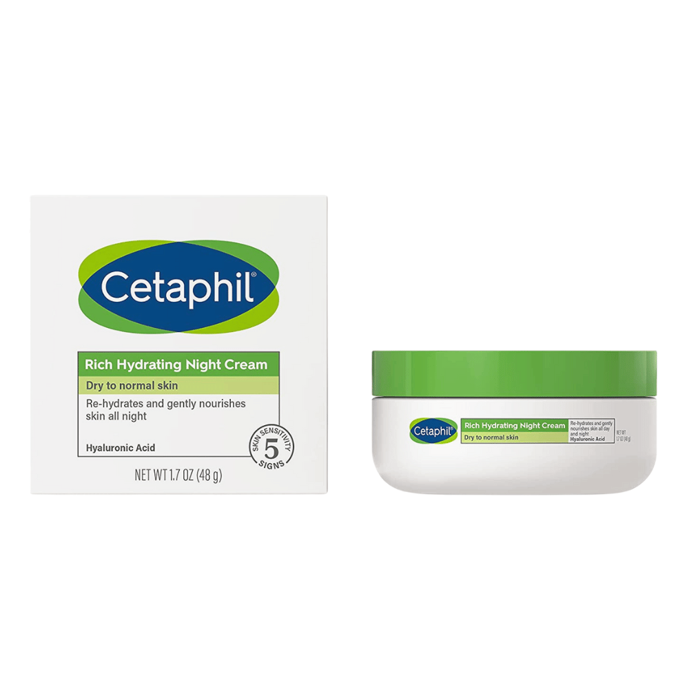 CETAPHIL Rich Hydrating Night Cream is a lightweight, non-greasy cream with a gentle formula that absorbs quickly and won't clog pores.