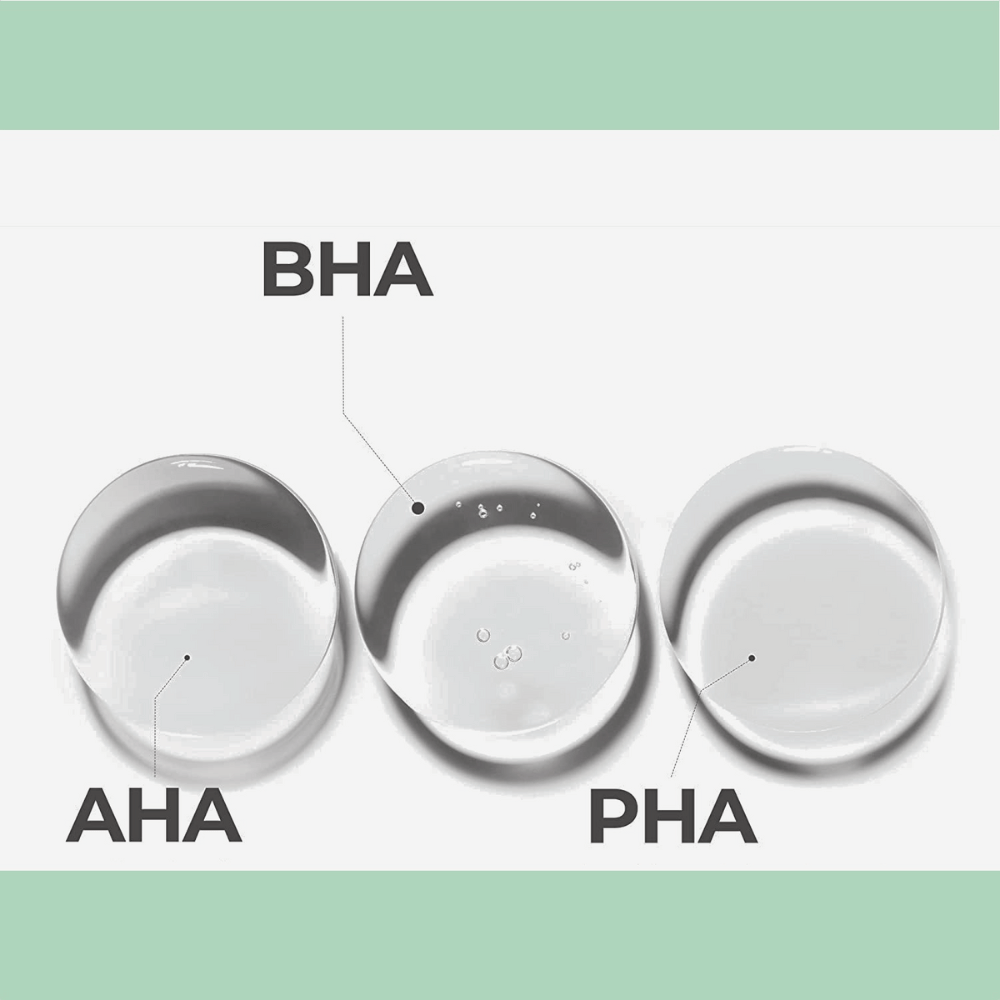 Ingredients used include AHA, BHA, PHA, Water, and Centella Asiatica Extract.